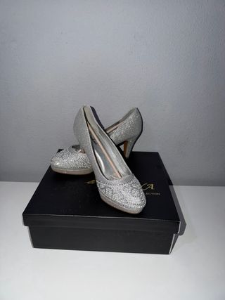 Tacones plateados brillantes