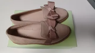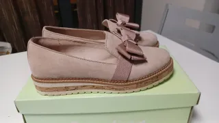 Elegantes zapatos planos para mujer con un bonito detalle de lazo. - Suela de plataforma con acabado efecto corcho. - Adorno de lazo en la parte delantera. Sin estrenar.