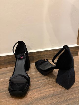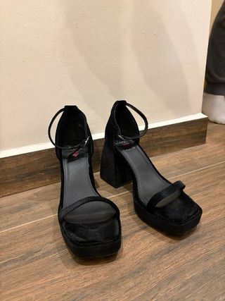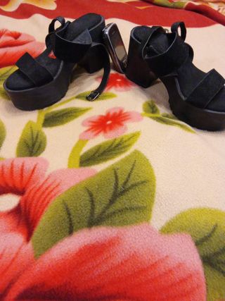Elegantes zapatos de tacón con plataforma y tira al tobillo. - Diseño peep-toe. - Material de ante. - Tacón de aguja.tengo más cosas interesantes en mi perfil hago envío por wallapop o recogida en persona cualquier duda puede consultar sin compromiso suelo responder pronto.si compra muchas cosas de mi perfil les descuento preguntar sin compromiso.