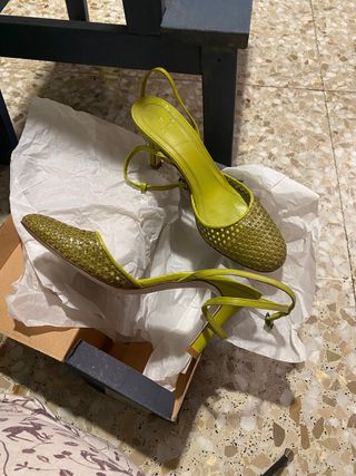 Zapato tacón abierto por detrás . Muy buen estado solo un uso.