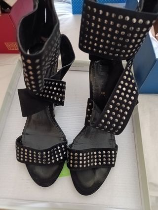 Color verde con adorno y tacones de carey, número 39.Son de Angel Alarcón, comprados en el corte Inglés.