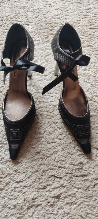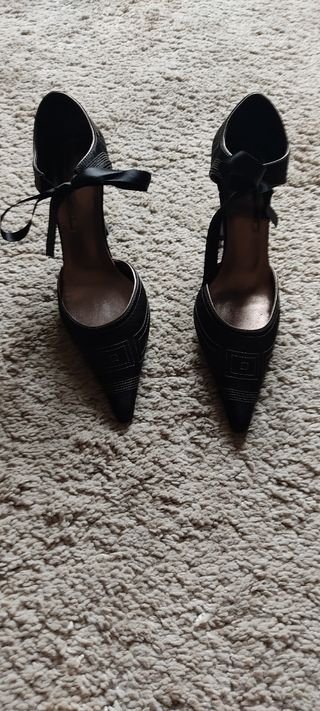 Zapatos mujer tacón 6 cm. Con detalle lazo y brillante en la parte de atrás. Ideales vestido o pantalón. Sin estrenar, se venden a menos del 50% de su precio original