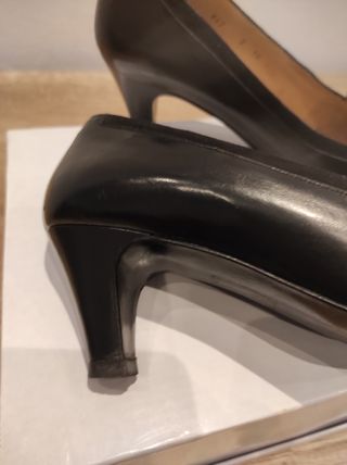 Zapatos negros de vestir. Tacón. Y plataforma por delante. Muy elegantes. Es un 36 amplio.