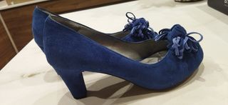 Precioso zapato de mujer y tacón de vestir marca Asensio. Gran comodidad "zapato confort" azulón talla 38. De Ante. Tacón elegante. Pequeña plataforma delantera oculta en el zapato. 1 solo uso, como se ve en la suela está usado un rato. #asensio #zapatosmujer #zapatotacon38 #zapatoante #zapatoazul #modsmujer