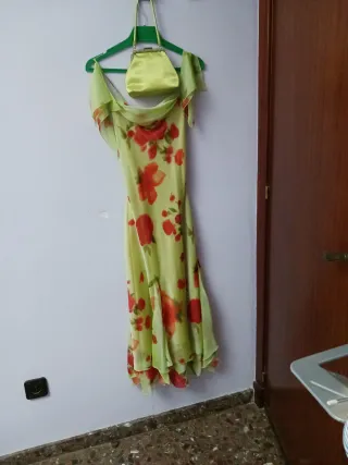 Elegante y juvenil vestido . Más bolso. ( también tengo zapatos del mismo color talla37 que me falta hacer foto - Diseño con escote asimétrico. - Tejido ligero y vaporoso. - Detalle de volantes en las mangas y el bajo.