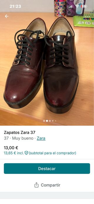 Zapatos de vestir de Zara en color granate. Un básico elegante para cualquier ocasión. - Talla 37. - Color marrón rojizo.
