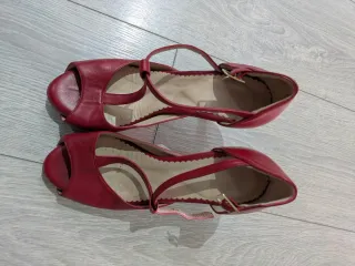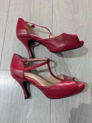 Zapatos de piel para baile, perfectos para practicar. - Material: Piel - Diseño abierto en la punta - Correa de tobillo ajustable