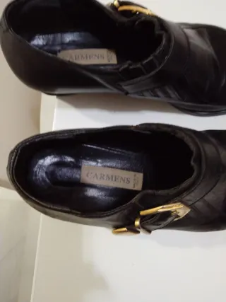 Zapatos de la marca italiana GIDO. Como nuevos. Puestos dos veces en salón de eventos(nunca a la calle), puedes ver las fotos y valorar el estado. Talla 38 y corresponden a la 38 española. Son muy estables y cómodos, el pie no se cansa. No resbalan! Puestas quedan muy elegantes.Tienen un aire clasico y vintage.Ideal bodas, comuniones, Semana santa, fiesta salon. Entrega Málaga capital. Envio inmediato en caja cuidadosamente preparada y muy bien embalada(leer mis reseñas). Precio muy económico.