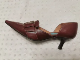Elegantes zapatos de piel con un diseño de inspiración italiana. - Material: Piel - Talla: 37 - Color: Marrón - Detalle de hebilla y ojales metálicos Tiene un poco desgastada la punta como indico en la última foto