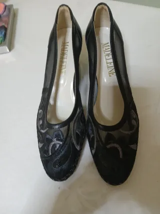 Elegantes zapatos de la marca Madeleine. - Diseño italiano. - Acabado en malla con detalles bordados. - Color negro.