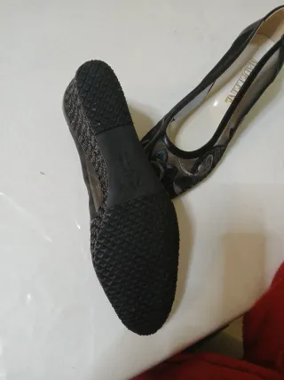 Elegantes zapatos de tacón con un diseño moderno y sofisticado. - Acabado metalizado brillante. - Punta afilada. - Tira fina en el tobillo. - Tacón de aguja alto. probados en mi patio no calle como se aprecia en las tapas ! me va pequeño !! 😢