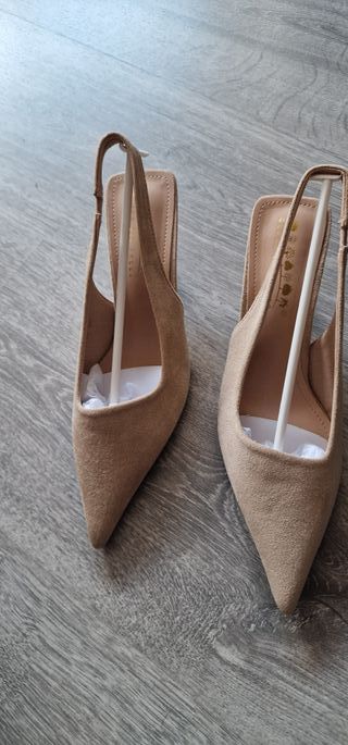 ZAPATOS DE TACON SIN ESTRENAR TALLA 36 ESTILO MODERNO MATERIAL EXTERIOR TIPO ANTE PUNTA FINA CORREA TRASERA TIPO SLINGBACK MUY BONITOS GRAN PRECIO EN TIENDA COSTARON 65 EUROS PERFECTOS PARA REGALAR