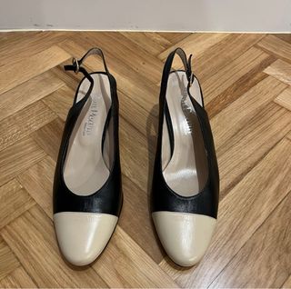 Elegantes zapatos de tacón con diseño slingback. Combinación de colores negro y beige. Talla 37. Sin uso. No realizo envíos.