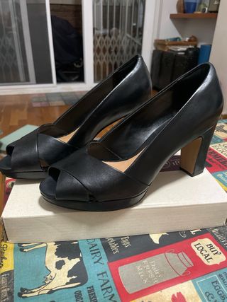 zapatos de tacon para mujer, marca Clarks, valoradas en 200€. sin rasguños, plantillas perfectas, tacones sin ningun desgaste y suela perfecta. solo un uso.