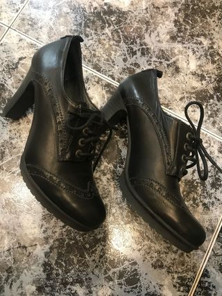 Zapatos tipo inglés tacón negros