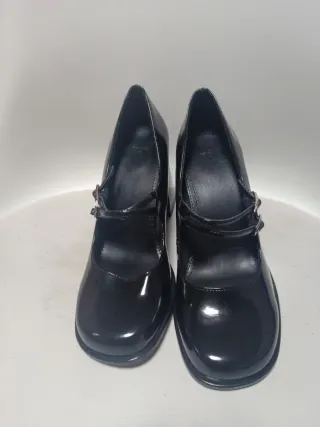 Elegantes zapatos tipo Mary Jane de la marca Bershka, sin estrenar. - Diseño clásico con doble tira y hebilla. - Tacón grueso y cuadrado. - Acabado brillante.