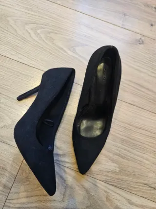 Vendo tacones negros con brillos de Mango, nuevos sin estrenar. Tacón mide 10 cm, talla 36 muy cómodos ya que tiene la correa ajustable en el tobillo y sujeta muy bien el pie. Envío muy rápido, en el mismo día o al día siguiente, dependiendo de la hora de la compra. Precio algo negociable siempre que sea razonable. Cualquier duda , hablarme al privado.