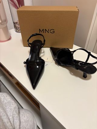 Tacones de mujer del número 37 de la marca Mango. Sin uso porque el número no era el correcto y por eso se vende. Tanto en color negro como rojo
