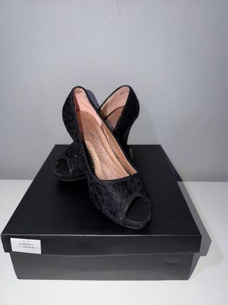 ZAPATOS TACÓN DE ENCAJE NEGRO.