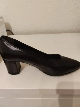 Zapato Tacón de piel de la marca Massimo Dutti en color negro. Es una talla 35 amplia. Incluye la caja original. SIN ESTRENAR