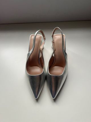 Zapatos tacón Mango plateados talla 40