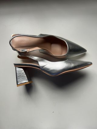 Zapatos de tacón del número 38 en color plata. Nuevo, sin uso.