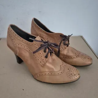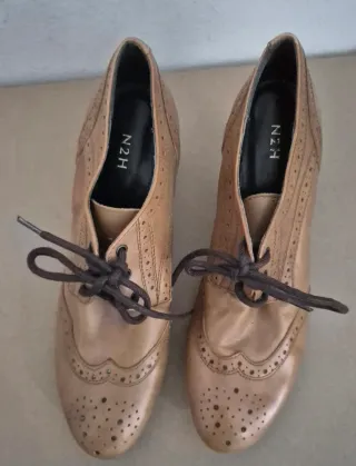 Elegantes zapatos estilo Oxford para mujer, confeccionados en piel de alta calidad.SIN ESTRENAR.El color camel muy elegantes - Diseño clásico Oxford con detalles perforados. - Cierre de cordones. - Tacón de altura media. - Suela de goma , que le dá comodidad