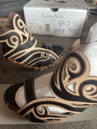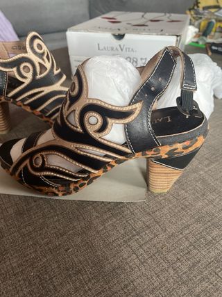 Zapatos tacón Laura Vita beige/negro sin estrenar