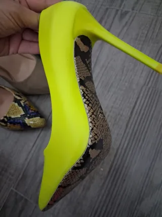 Zapatos de tacón neón con estampado serpiente