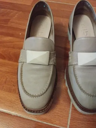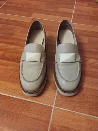 Mocasines de piel para mujer. - Material: Piel. - Diseño con detalle metálico en la pala. Son un 38 pero tallan grande, serán un 38.5 o 39. Yo uso 38 y me quedan grandes por eso no he podido usarlos