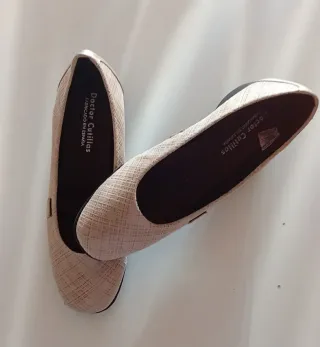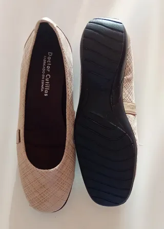Elegantes zapatos planos de la marca Doctor Cutillas. - Fabricados en España. - Diseño texturizado en color beige. - Talla 38.