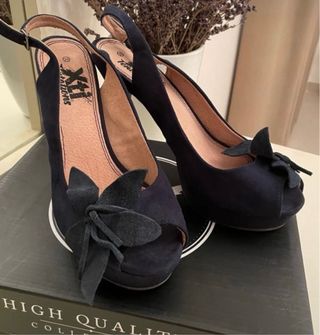 Zapatos de tacón con un poco de plataforma en la parte de delante para más comodidad . Solo puesto para probar, pero me quedaban demasiado apretados