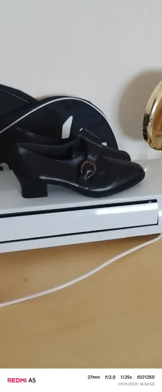 Zapatos de vestir negros de la marca Pitillos, en excelente estado. - Diseño elegante con tacón bajo. - Material exterior de piel. - Suela antideslizante.