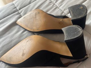 Elegantes zapatos de tacón destalonados en color negro. - Material exterior de ante. - Diseño de punta fina. - Correa elástica en el talón. - Marca: CORINA.