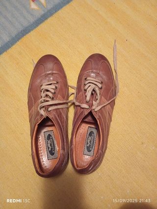 Zapatos negros de estilo Oxford con cordones. Como se puede ver en las fotos, tienen alguna marca del roce en la parte de adelante. No se nota mucho, por lo demás en perfecto estado. Usados pocas veces. - Material exterior estilo ante. - Suela gruesa y robusta. - Diseño clásico con cordones.