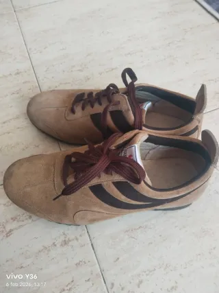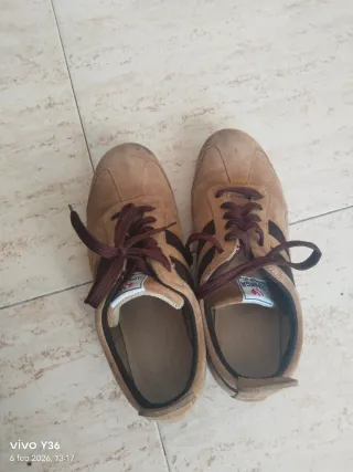 Zapatillas deportivas de ante en color beige con detalles en marrón oscuro. Perfectas para el día a día. - Cierre con cordones. - Suela de goma. - Diseño deportivo.