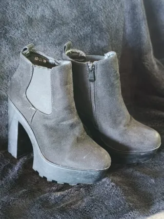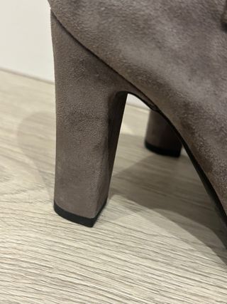 Elegantes zapatos de salón de ante en color gris. - Material: Piel ante. - Tacón grueso y plataforma.