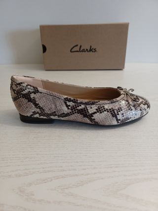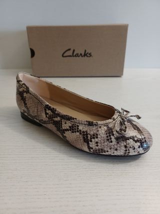 CLARKS Fawna Lily, bailarinas talla 37.5 plantilla 23.5cm, piel estampada serpiente