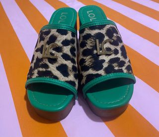 Preciosos zuecos de la marca Lola CSD. Son de tacón y presentan un estampado de leopardo en tonos marrones y beige, combinados con detalles en verde. ¡Ideales para darle un toque chic a cualquier look! - Diseño de zueco, cómodo y fácil de poner. - Estampado de leopardo elegante. - Tacón de altura media. Usados solo una vez. Precio negociable. Con caja original incluida.