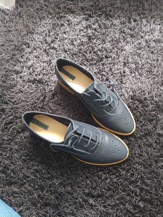 Aunque En el Zapato pone 39(Para ese número son pequeños)...Son para quien calce un 37 - 37 1/2....Elegantes zapatos negros con cuña, perfectos para cualquier ocasión. Son cómodos y estilosos. - Diseño tipo Oxford con cordones. - Detalle de picado decorativo. - Cuña de altura media.