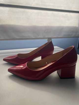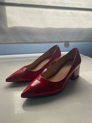 Zapatos Zara tacón bloque charol rojo
