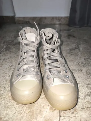Zapatos de caña alta de la marca Converse. - Diseño en color beige y blanco. - Suela de goma. - Cierre de cordones.