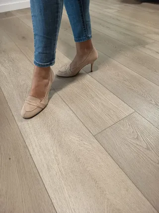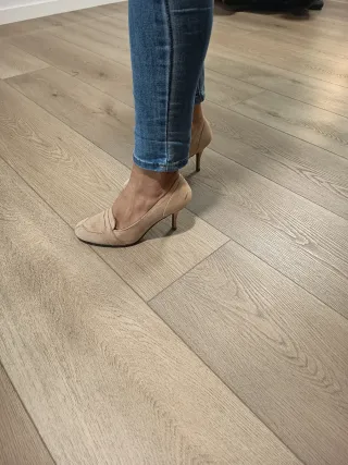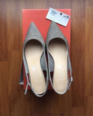 Elegantes zapatos de tacón de Zara Basic. - Diseño slingback con punta fina. - Material tipo ante. - Tira elástica en el talón.