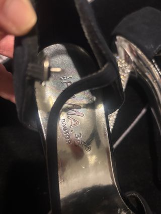 Elegantes zapatos de fiesta de la marca Fama. - Color negro y plateado. - Diseño con pedrería. - Tacón alto.