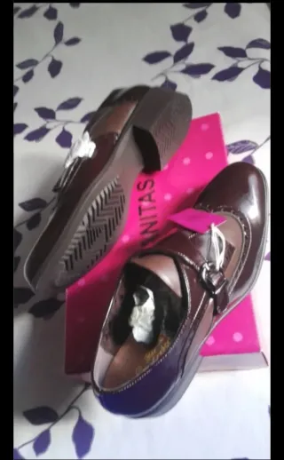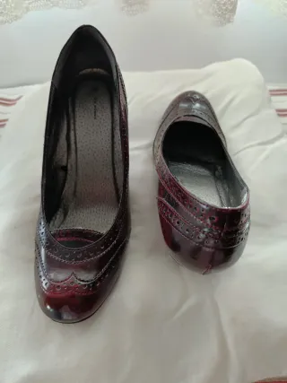 Zapato de invierno con acabado charol, zapato de vestir. - Diseño elegante. - Cierre con cordones. - Tacón grueso. - Número 38. - 1 solo uso. - Su coste de compra fue 89,99€ en El Corte Inglés. - Están en perfecto estado. - La suela agarra muy bien.