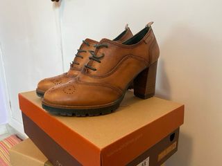 Zapatos Pikolinos. Usados en 2 ocasiones. Precio original 109€ - Diseño tipo Oxford. - Tacón grueso y suela de goma. - Cierre con cordones.