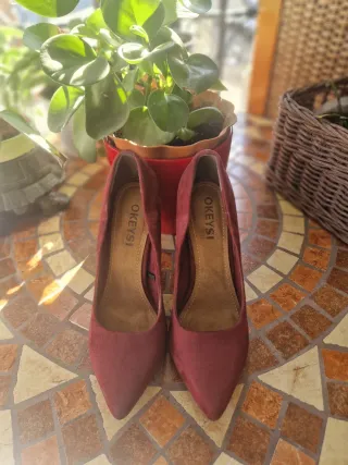 Elegantes zapatos de tacón con diseño slingback. - Material: Ante. - Color: buganbilla - Punta fina. - Tira ajustable en el talón.
