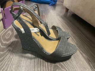 Zapatos de cuña plateados brillantes