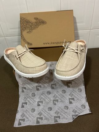 Zapatos tipo mule de la marca Kangaroos en color beige. Son cómodos y fáciles de poner. - Diseño abierto en el talón. - Cordones decorativos en la parte delantera. - Suela blanca con detalles. - Tejido texturizado. Pvp: 55€