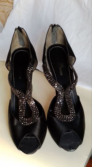 Zapatos Gloria Ortiz Satén Negro Pedrería